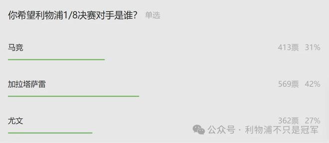 卡拉格更想要加拉塔萨雷的观点,与我们昨天的投票情况一致,更多人选择了加拉塔萨雷,甚至有27%选择了昨天赛前三球落后的尤文,大家多少还是对马竞抱有更多“敬畏”之心。