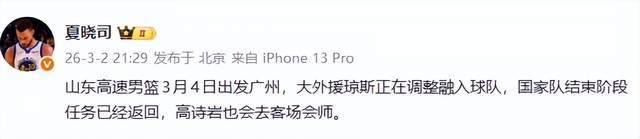 好消息!山东队奔赴广州,新援积极融入,高诗岩回归,再斗郭艾伦